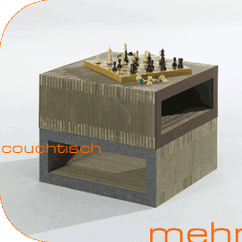 +++ schachspiel oder asiamenue. wer weiss schon wie der tag zu ende geht. übereinander oder nebeneinander. für jeden fall stellt sich der couchtisch auf alle situationen ein.